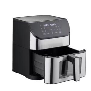 قلاية هوائية كهربائية بتصميم أنيق وعصري، بسعة كبيرة، مثالية لطهي الأطعمة بطريقة صحية بدون زيت.