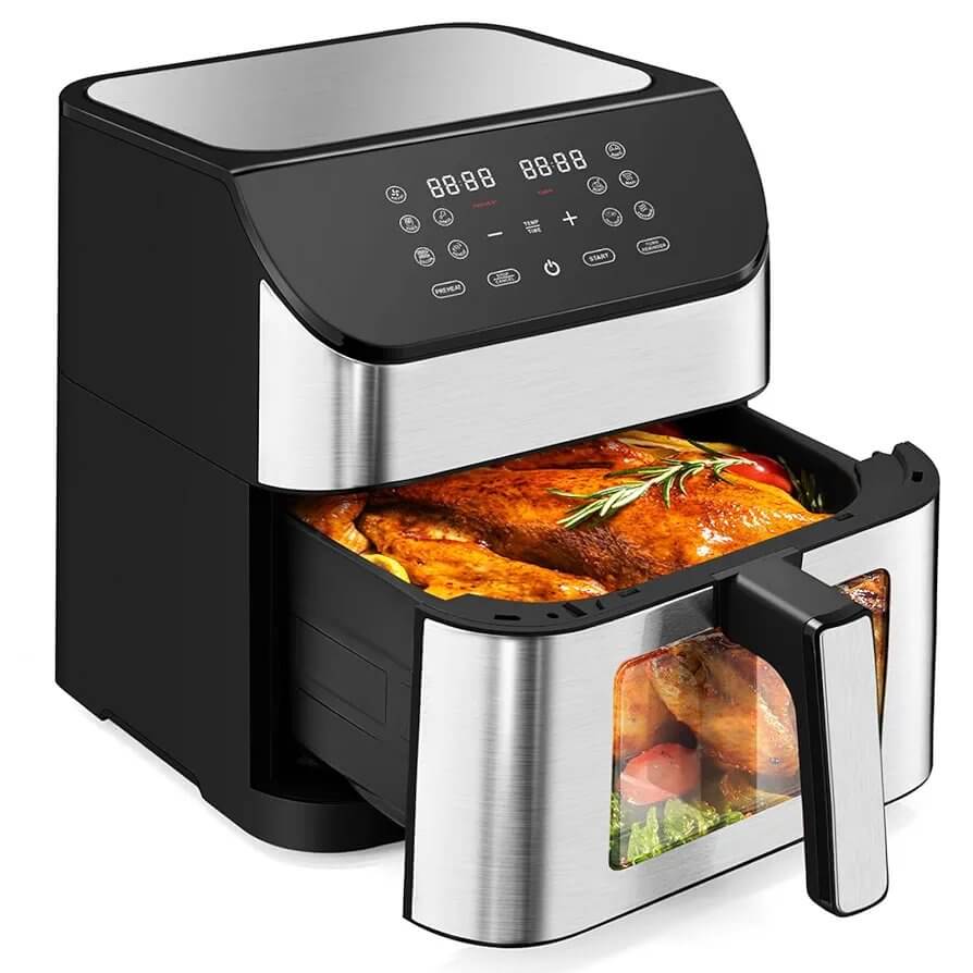 – *نافذة شفافة* لمراقبة الطعام أثناء الطهي دون فتح الدرج.