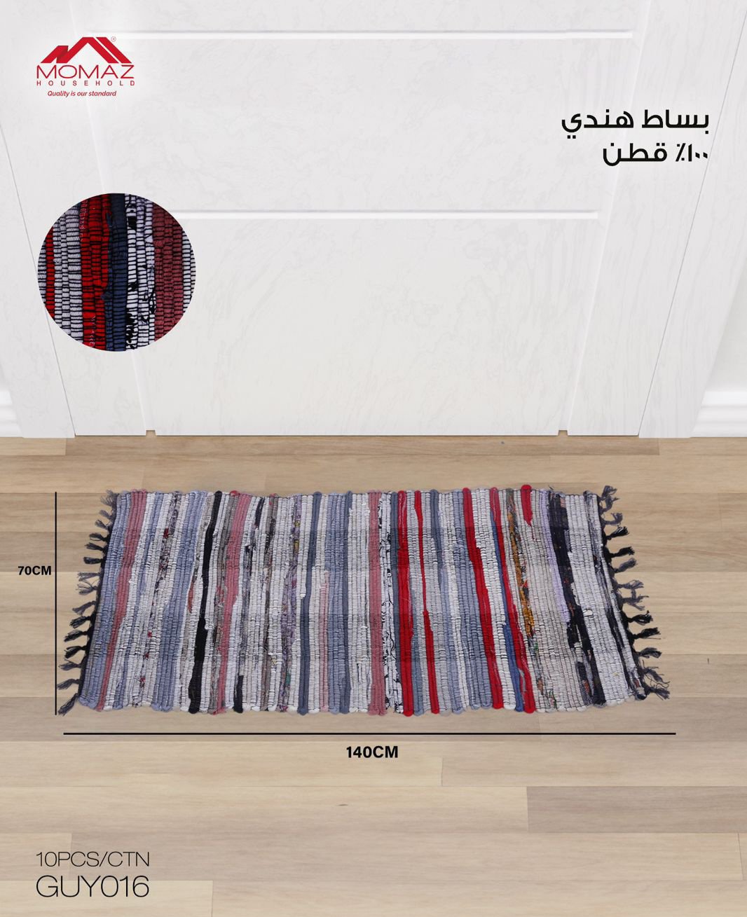 بساط هندي فاخر بتصميم تقليدي يعكس سحر الثقافة الهندية الأصيلة. يتميز بنقوش هندسية وزخارف فنية غنية بالألوان الزاهية مثل الأحمر، الأزرق، الذهبي والبرتقالي، ليضفي لمسة دافئة ومميزة على أي مساحة. مصنوع من خامات عالية الجودة مثل القطن أو الصوف، بملمس ناعم ومتين في نفس الوقت. يناسب غرف المعيشة أو الجلوس أو الزوايا الشرقية، ويمكن استخدامه كقطعة ديكور أو سجادة أرضية.