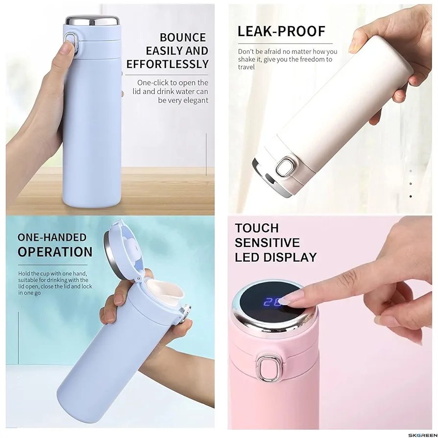 ترموس ذكي أنيق مزوّد بغطاء يفتح بلمسة واحدة ليسهّل الشرب بيد واحدة فقط. مصنوع بتصميم مانع للتسرب حتى مع الاهتزاز، لتأخذه معك بثقة أينما كنت. يتميز بشاشة LED حساسة باللمس لعرض درجة حرارة المشروب فورًا. مثالي للسفر، العمل أو الاستخدام اليومي.