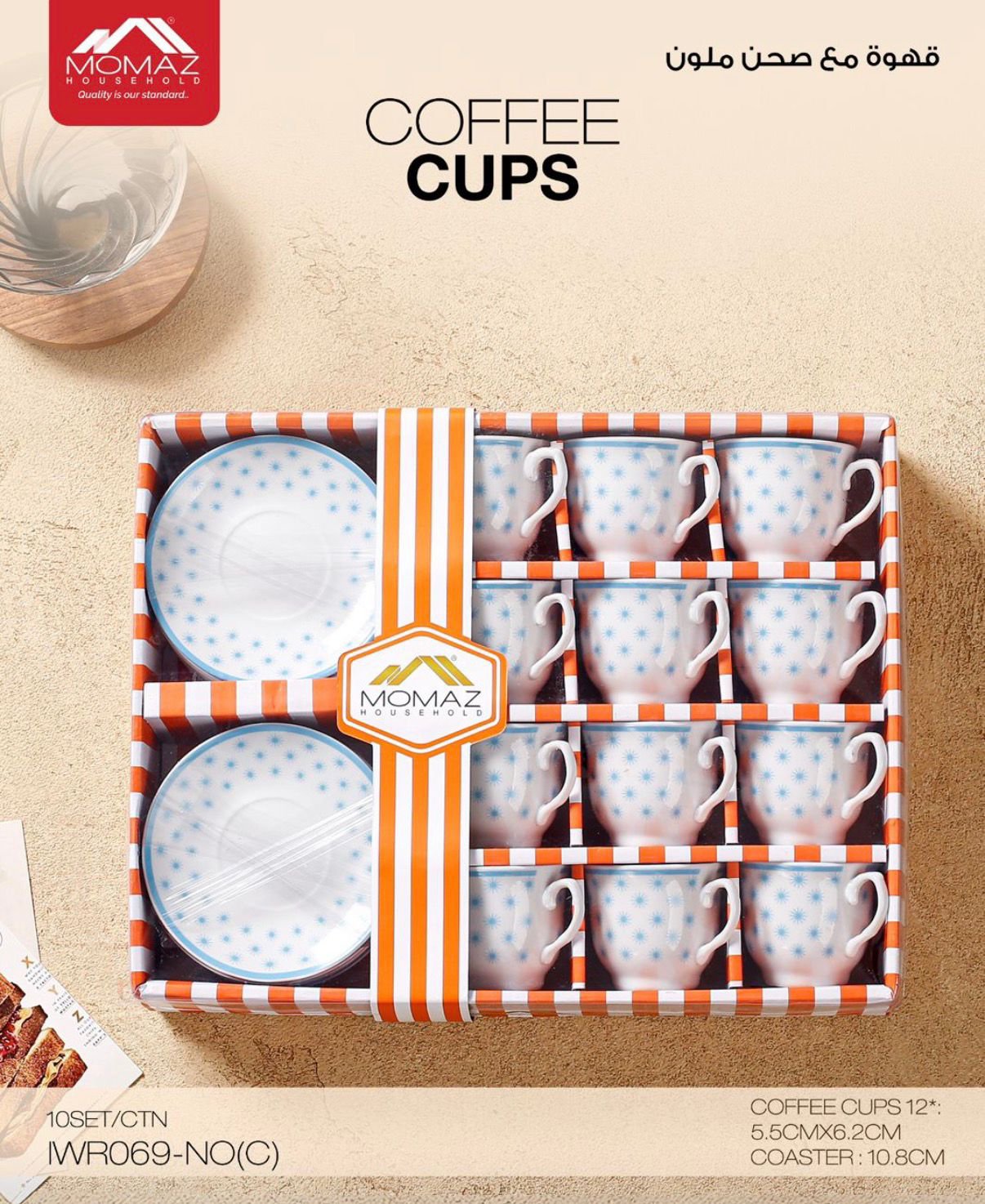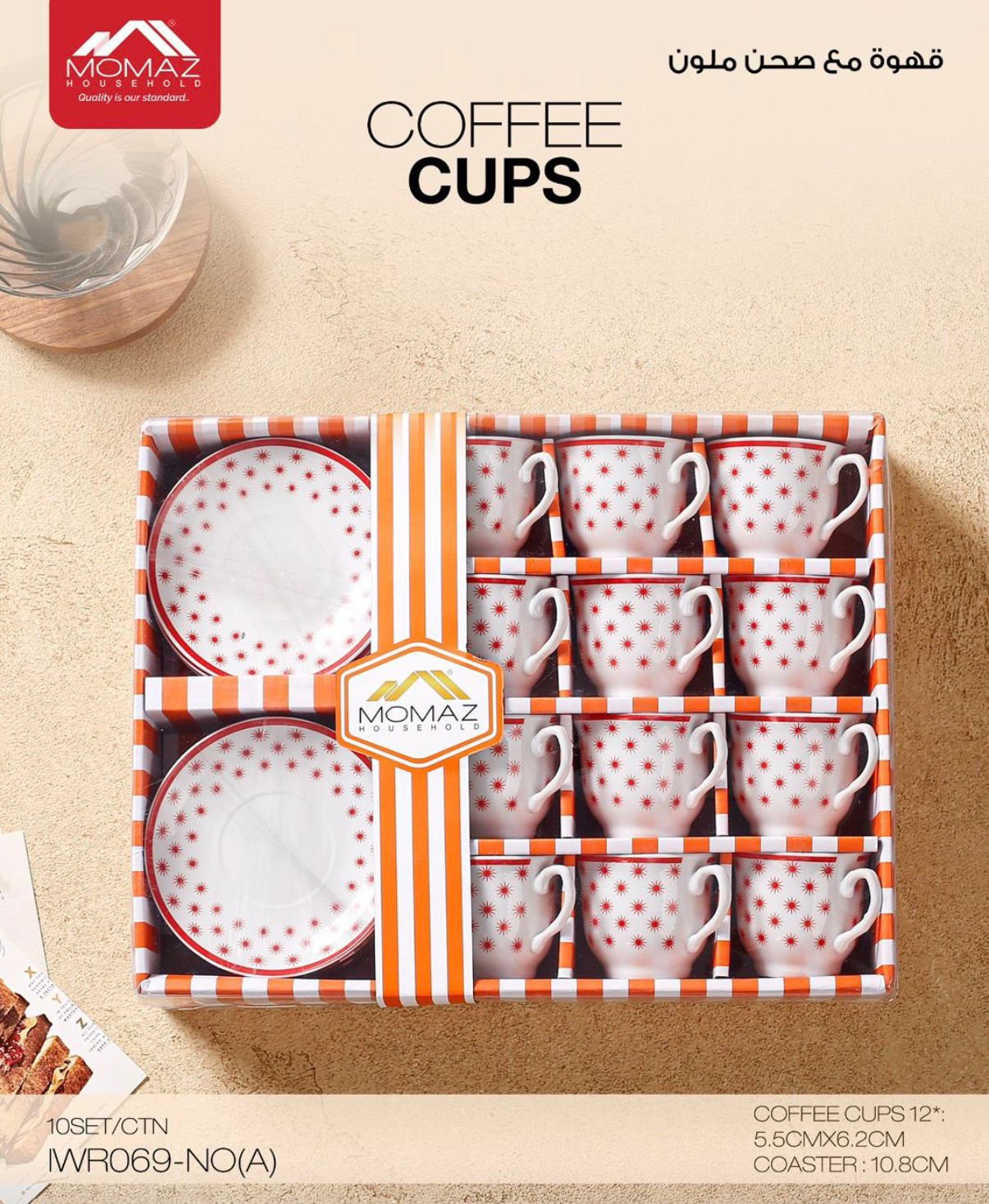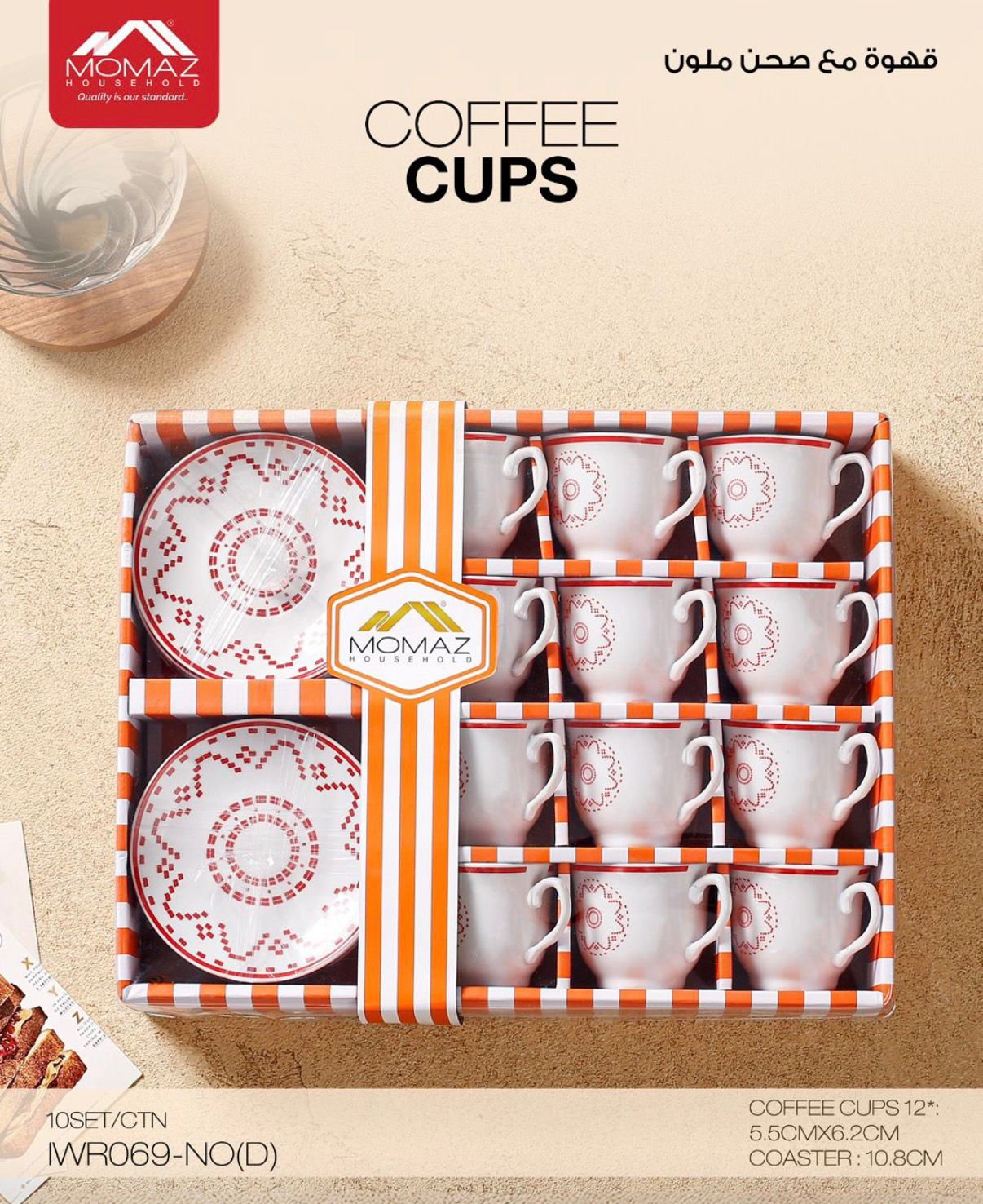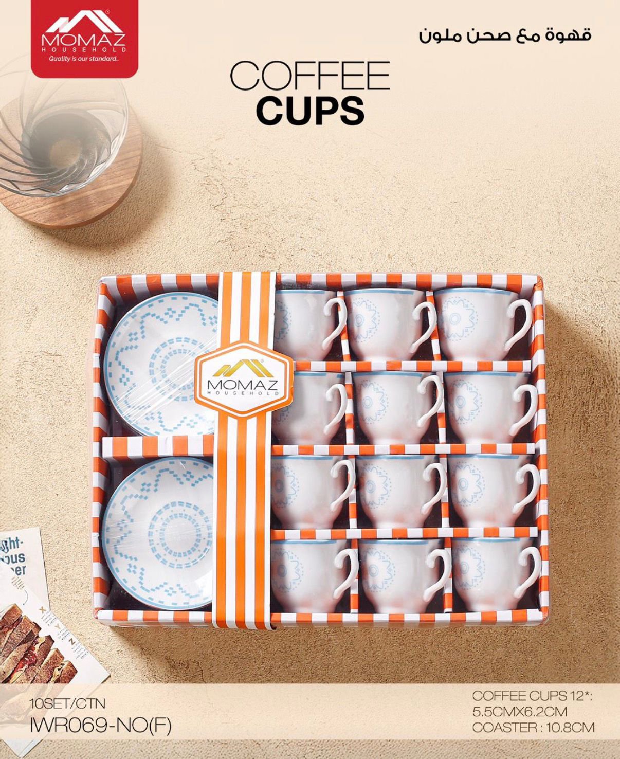 ✨ طقم فناجين قهوة مع صحون ملونة من MOMAZ