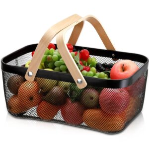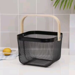تتميز بتصميم شبكي معدني باللون الأسود يسمح بمرور الهواء للحفاظ على الفواكه والخضروات طازجة لأطول وقت ممكن، مع مقابض خشبية مزدوجة تسهّل الحمل والنقل بأناقة وثبات.
