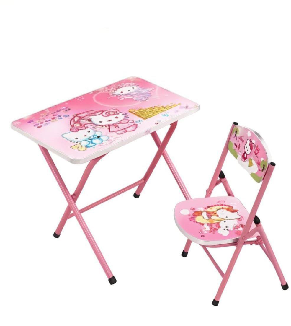 طقم طاولة وكرسي مميز للأطفال بتصميم المحبوب، مثالي للدراسة، التلوين، اللعب وتناول الوجبات. يتميّز بجودة عالية، ألوان زاهية، وخامة متينة آمنة للأطفال. يمكن طيّه بسهولة للتخزين أو النقل، مما يجعله مناسباً للمنزل، الحضانة أو غرف الأطفال