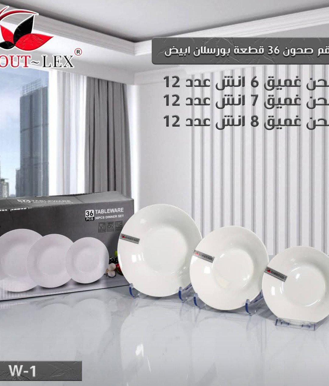 طقم صحون ٣٦ قطعة أبيض Dinner Set W-1