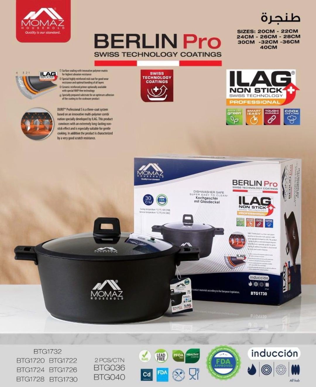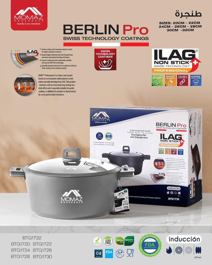 طنجرة *MOMAZ BERLIN* الفاخرة تقدم لك تجربة طهي عملية وصحية. مصنوعة من الألمنيوم المصبوب عالي الجودة، ومزودة بغطاء زجاجي مقاوم للكسر، لتجمع بين المتانة والأمان.