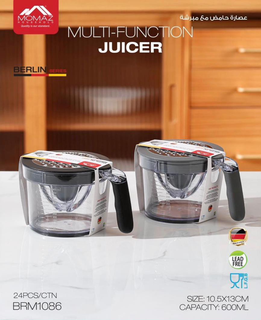 عصارة حامض مع مبرشة موماز عملية ومتعددة الاستخدامات، مصممة لتسهيل عصر الليمون والبرتقال والفواكه الحمضية الأخرى بسرعة وكفاءة. تحتوي على مبرشة مدمجة لتبشر القشور وإضافة نكهة طبيعية للطعام والمشروبات. مصنوعة من مواد عالية الجودة مقاومة للصدأ وسهلة التنظيف، مع تصميم مريح لليد يضمن ثباتًا وسهولة في الاستخدام، مثالية للاستخدام اليومي في المطبخ لإعداد العصائر والصلصات الطازجة.