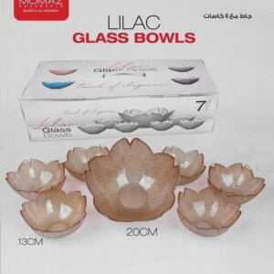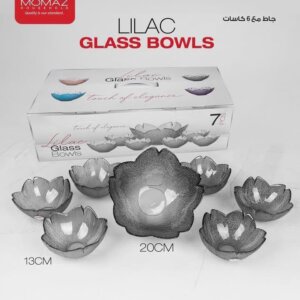 يأتي الطقم مكوّنًا من 7 قطع: جاط كبير قياس 20 سم مع 6 قطع صغيرة قياس 13 سم، مصنوع من زجاج عالي الجودة بلمسة لامعة تعكس الأناقة والرقي. مثالي للتقديم اليومي والضيافة، عملي، متين، وسهل التنظيف، ويمنح سفرتك شكلًا عصريًا ومميزًا