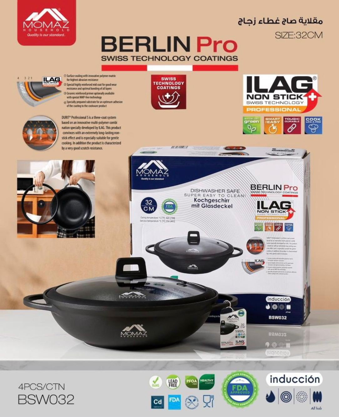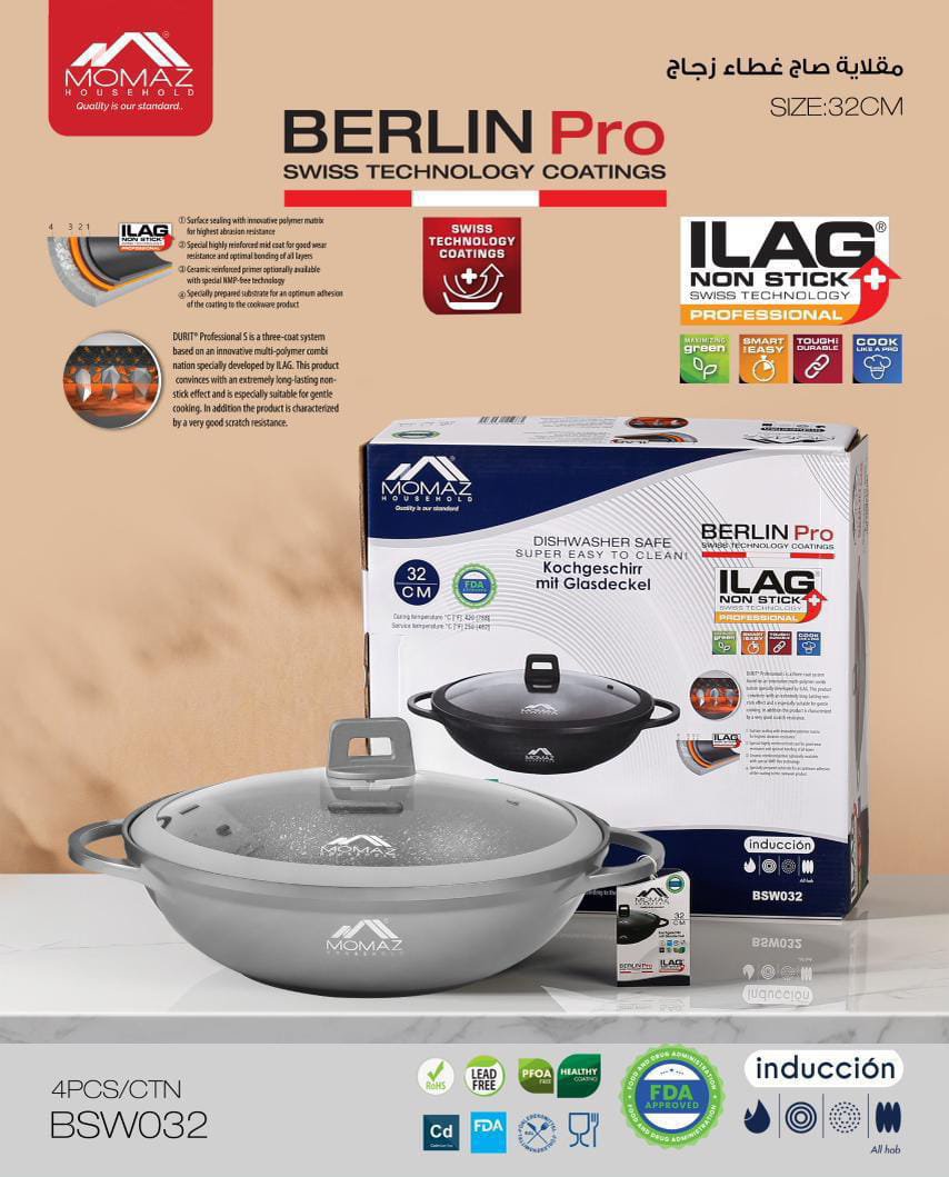 ارتقِ بتجربتك في الطهي مع مقلاة MOMAZ المصممة بعناية لتجمع بين المتانة والأداء العالي. تأتي بمقبض مريح وغطاء زجاجي سميك مقاوم للكسر بحافة سيليكون تمنع الانزلاق وتزيد من الأمان أثناء الاستخدام.