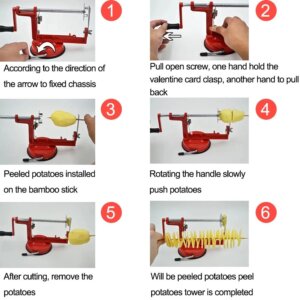 آلة يدوية لتقطيع البطاطس إلى شرائح حلزونية أو شبيهة بـ “التورنادو”، مثالية لتحضير بطاطس مقلية مميزة أو البطاطا المشوية على السيخ، كما يمكن استخدامها أيضاً لصنع شرائح مقرمشة أو للزينة.