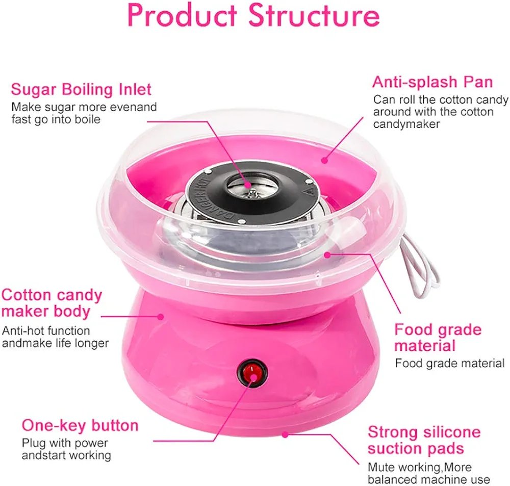 ماكينة غزل البنات العملية لتحضير القطن الحلو في دقائق، مثالية للحفلات والمناسبات أو لتسلية الأطفال في المنزل.