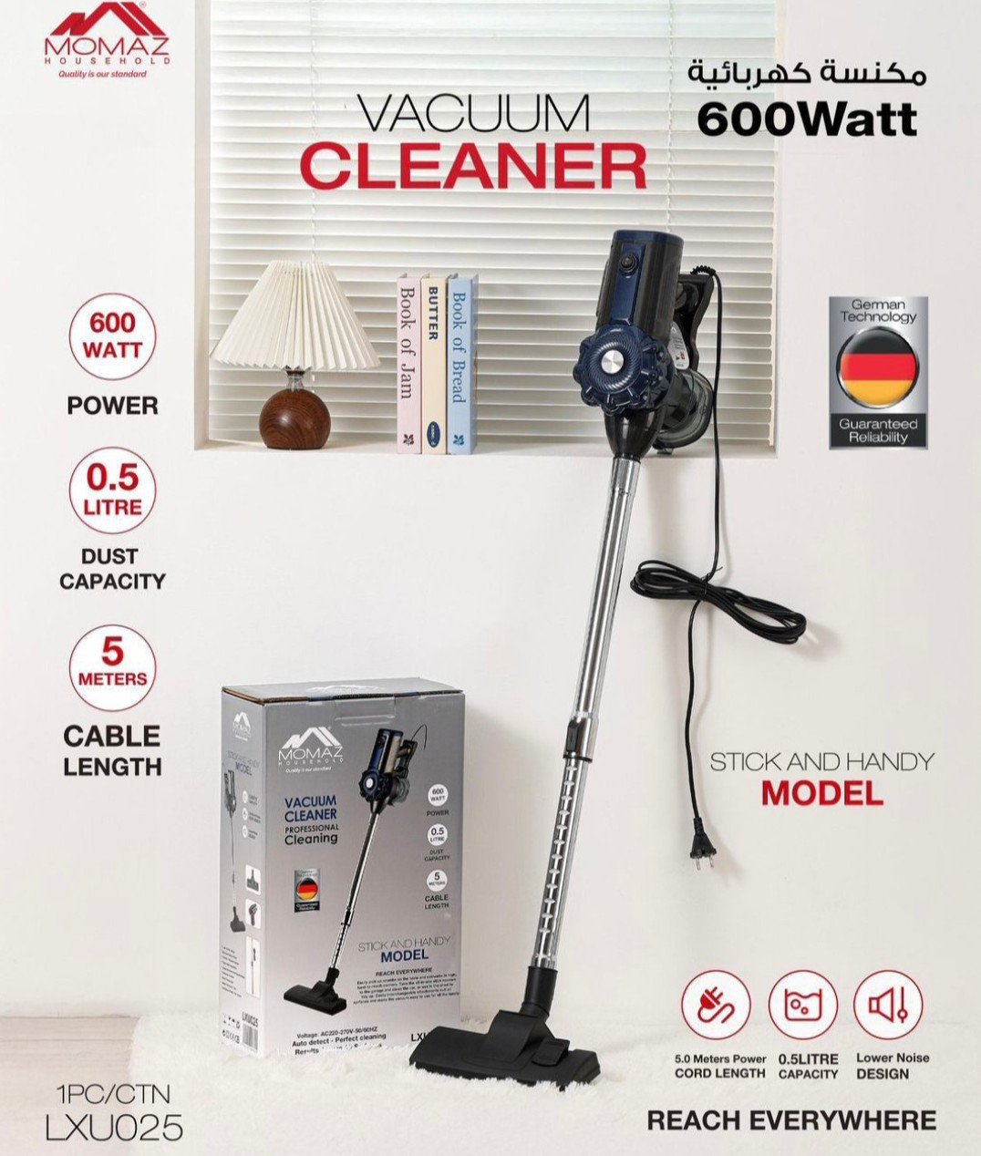 مكنسة كهربائية MOMAZ 600 واط – قوية وعملية لتسهيل التنظيف اليومي.