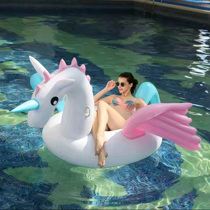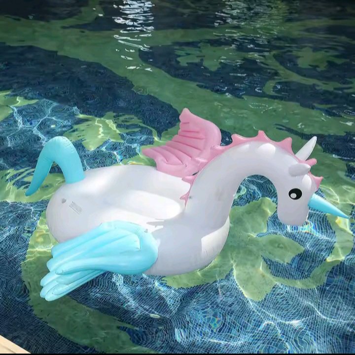 عوامة هوائية بشكل يونيكورن (حصان البحر المجنح)، تتميز بتصميم جذّاب وألوان زاهية تجذب الأنظار. مصنوعة من مواد بلاستيكية قوية ومقاومة للماء، مثالية للسباحة والاسترخاء في حمام السباحة. تأتي بأجنحة وردية وزعانف زرقاء، مع قرن بارز وعينين كبيرتين تضفي عليها طابعًا كرتونيًا محببًا للأطفال والكبار على حد سواء. مثالية لأيام الصيف الممتعة والأنشطة المائية.
