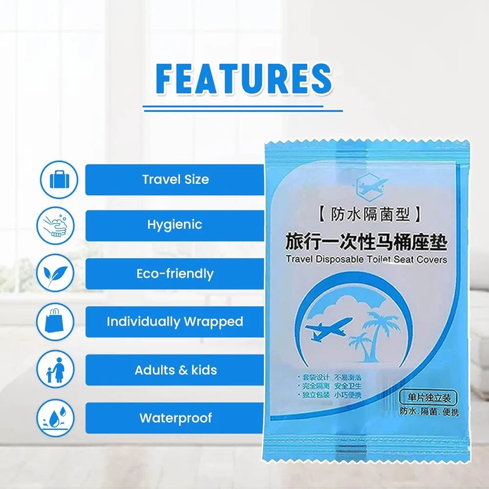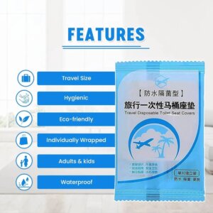 غطاء مرحاض صحي Disposable Toilet Seat Cover عملي ونظيف للحماية من الجراثيم والبكتيريا عند استخدام الحمامات العامة. سهل الاستخدام، خفيف، وقابل للرمي بعد الاستعمال مباشرة ????