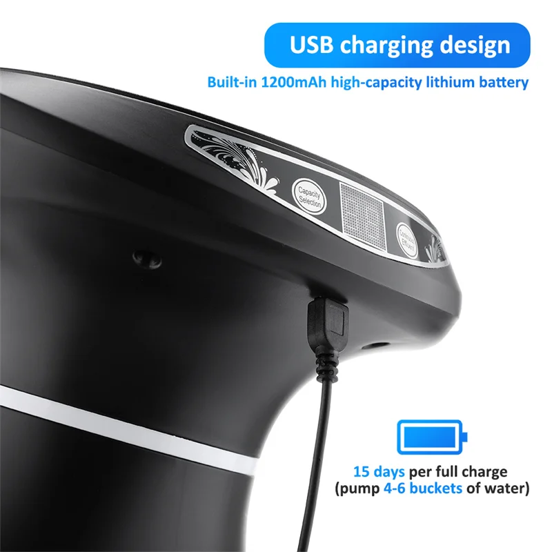 Built-in 1200mAh high-capacity lithium battery, it can be used for 15 days each time it is fully charged (pump 4-6 buckets of water).